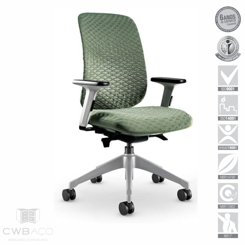 - Mecanismo: Mecanismo Syncron autoajustável com 3 regulagens. O assento possui regulagem de profundidade (RP) com retorno automático.